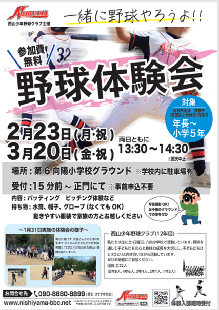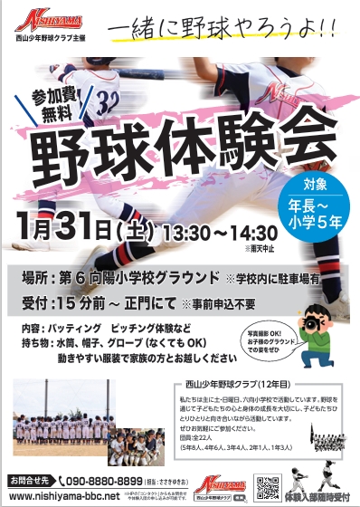 【野球体験会のご案内】
