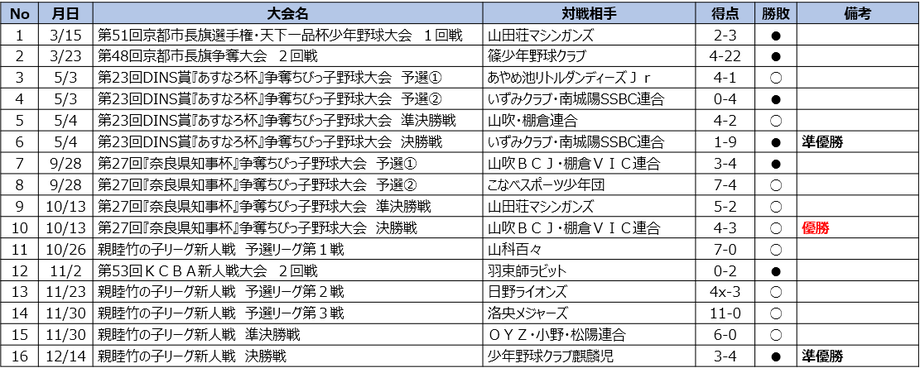 大  会  名:親睦竹の子リーグ新人戦 予選リーグ第1戦