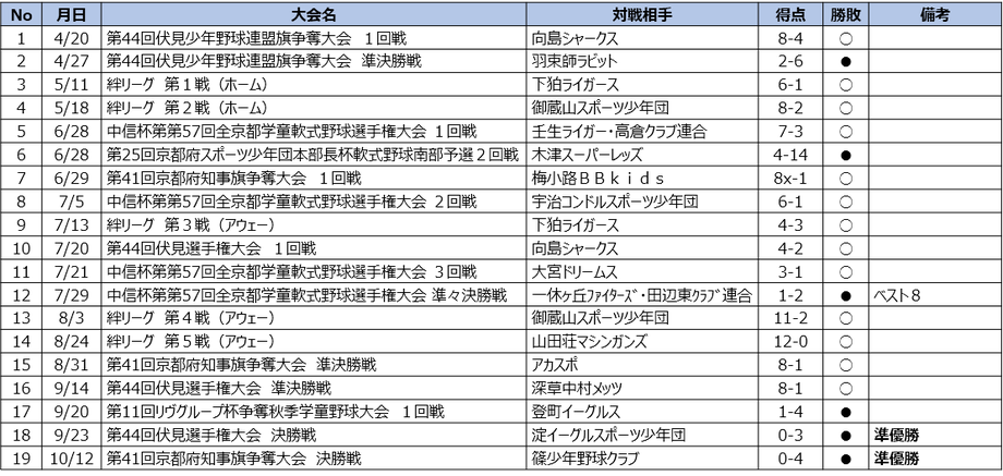 大 会 名:第25回京都府スポーツ少年団本部長杯軟式野球交流大会 南部ブロック予選会 2回戦